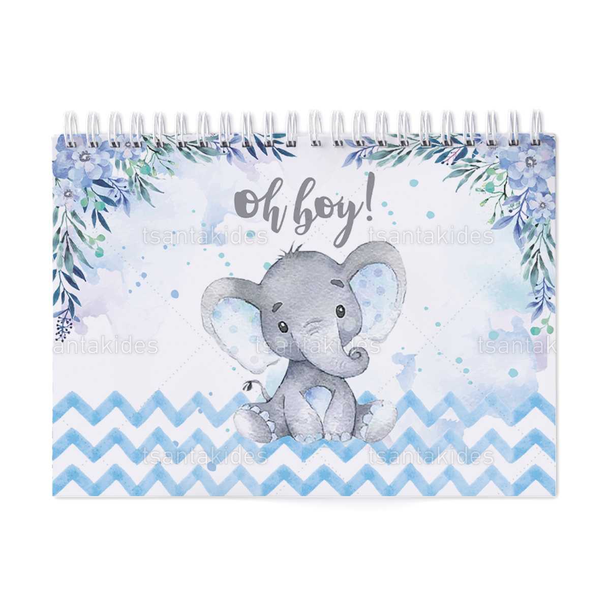Παιδική μπομπονιέρα βάπτισης μπλοκ ζωγραφικής με διάσταση 21x29cm, εκτυπωμένο με θέμα Ελεφαντάκι.