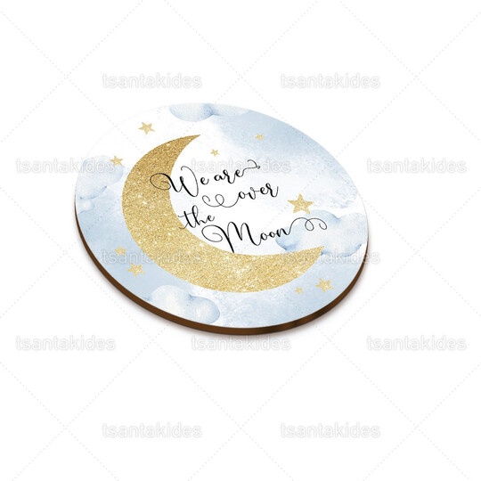 Ξύλινο διακοσμητικό μπομπονιέρας εκτυπωμένο με θέμα Over the moon
