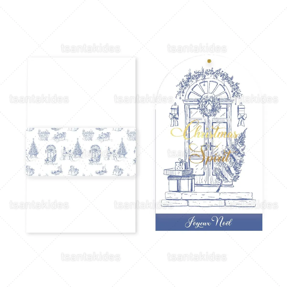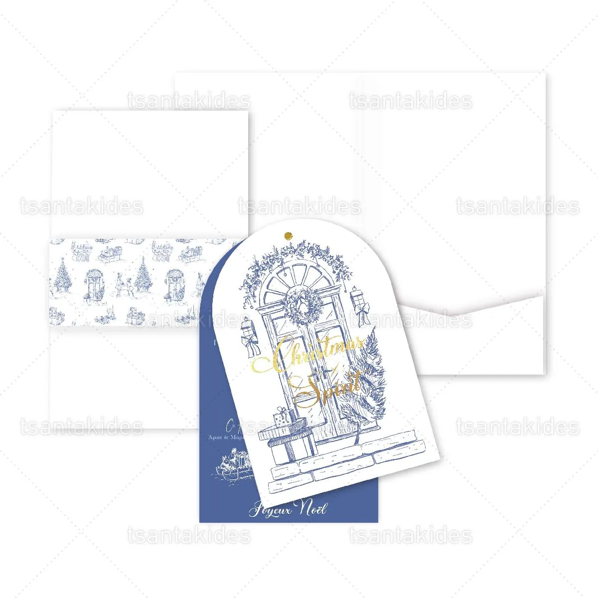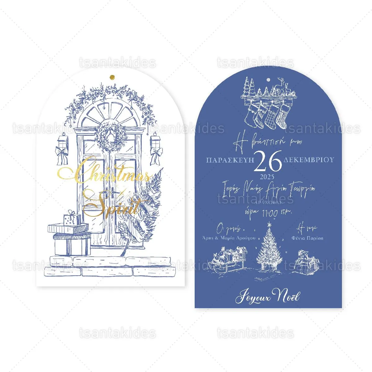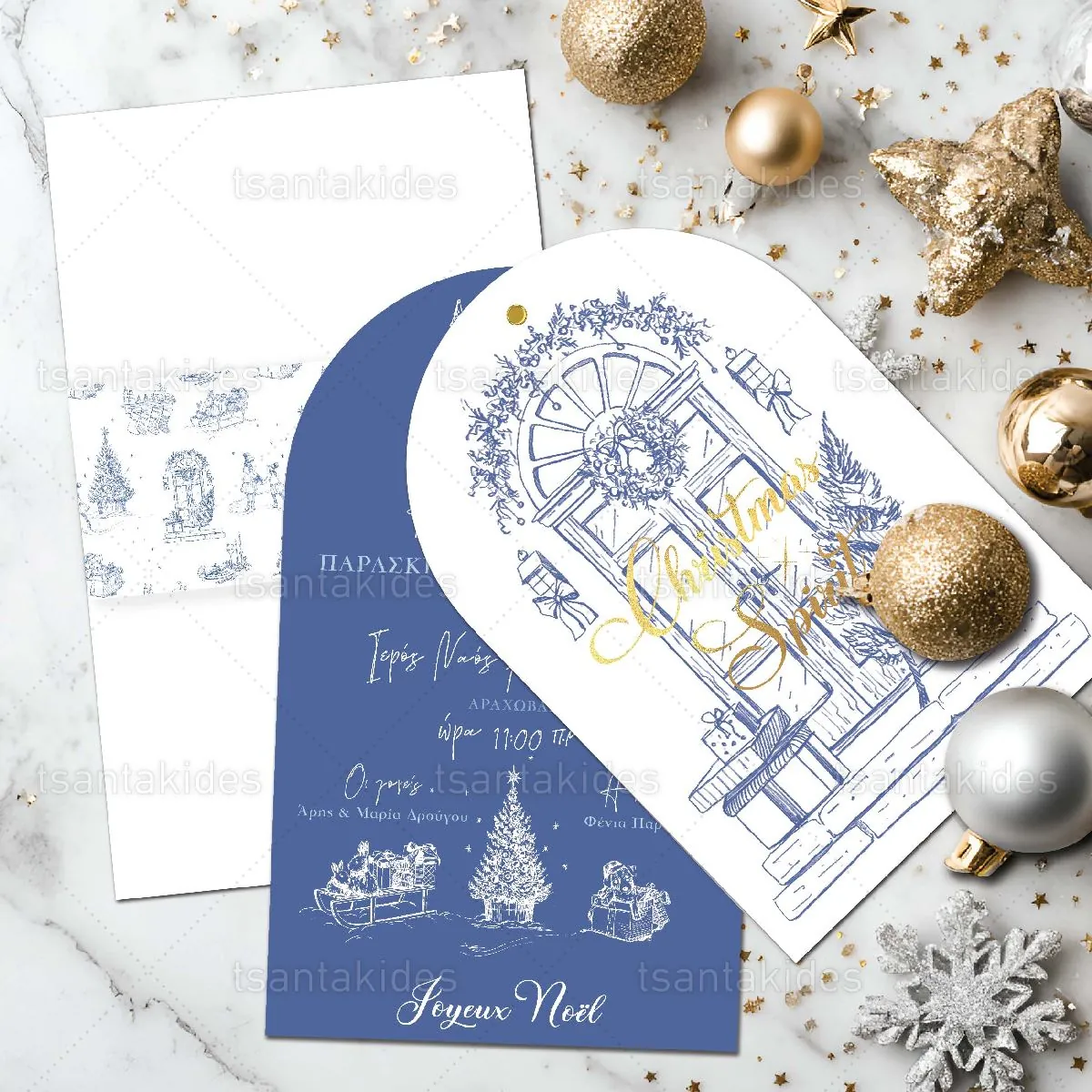 Προσκλητήριο βάπτισης εκτυπωμένο με θέμα Xmas Blue Toile.