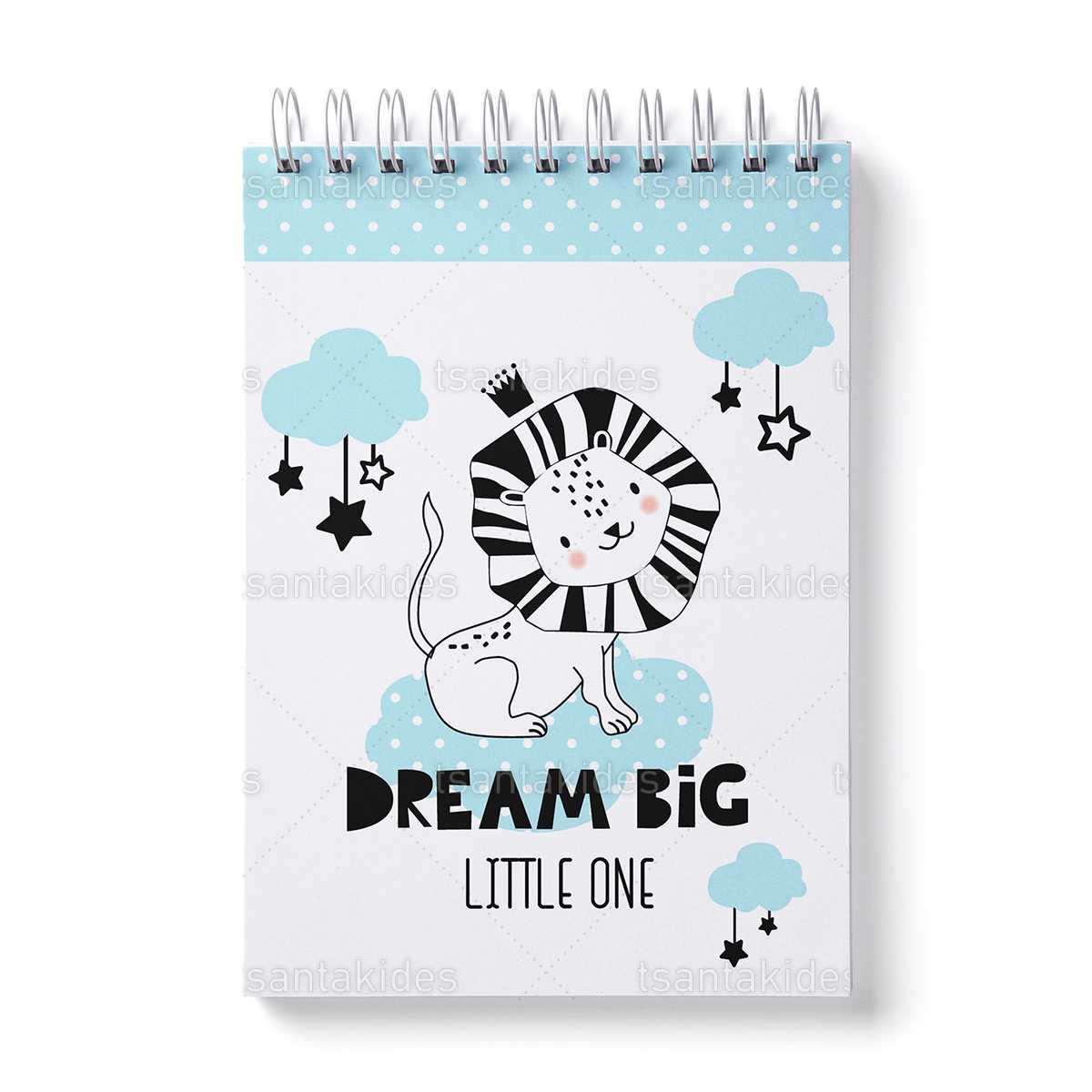 Παιδική μπομπονιέρα βάπτισης μπλοκάκι ζωγραφικής εκτυπωμένο με θέμα Λιονταράκι.