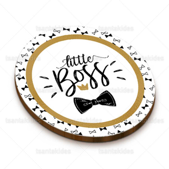 Ξύλινο διακοσμητικό μπομπονιέρας εκτυπωμένο με θέμα little boss