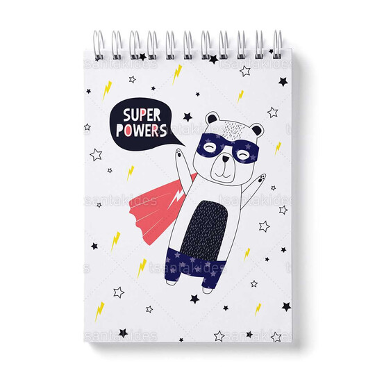 Παιδική μπομπονιέρα βάπτισης μπλοκάκι ζωγραφικής εκτυπωμένο με θέμα Αρκούδος Σούπερ Ήρωας.