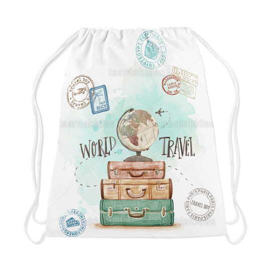 Υφασμάτινο σακιδιο πλατης εκτυπωμένο με θέμα travel boy