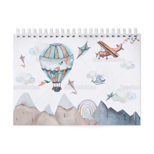 Παιδική μπομπονιέρα βάπτισης μπλοκ ζωγραφικής με διάσταση 21x29cm, εκτυπωμένο με θέμα Travel Boy.