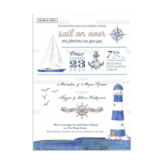 Προσκλητήριο βάπτισης παπυράκι εκτυπωμένο με θέμα το καράβι