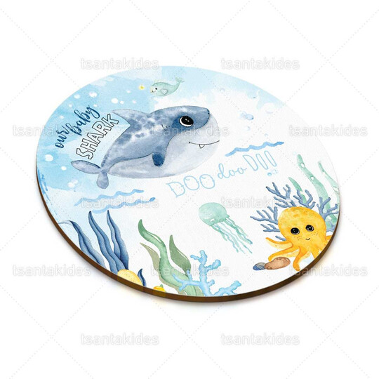Ξύλινο διακοσμητικό μπομπονιέρας εκτυπωμένο με θέμα Baby Shark