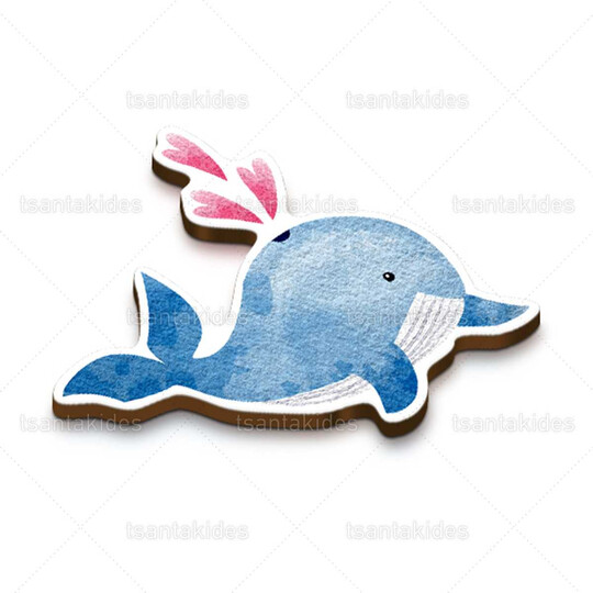 Ξύλινο διακοσμητικό μπομπονιέρας εκτυπωμένο με θέμα τη θάλασσα και το μικρό φαλαινάκι