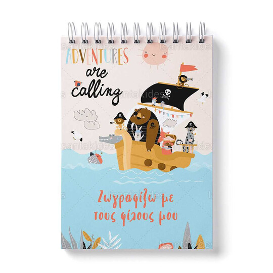 Παιδική μπομπονιέρα βάπτισης μπλοκάκι ζωγραφικής εκτυπωμένο με θέμα Ζωάκια Πειρατές.