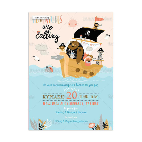 Προσκλητήριο βάπτισης παπυράκι εκτυπωμένο με θέμα sailing adventure