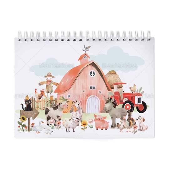Παιδική μπομπονιέρα βάπτισης μπλοκ ζωγραφικής με διάσταση 21x29cm, εκτυπωμένο με θέμα Ζώα Της Φάρμας.