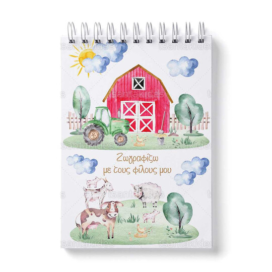 Παιδική μπομπονιέρα βάπτισης μπλοκάκι ζωγραφικής εκτυπωμένο με θέμα Ζώα Της Φάρμας.