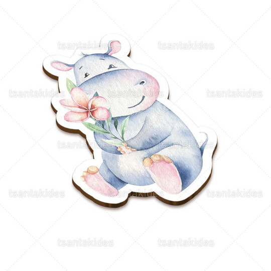Ξύλινο διακοσμητικό μπομπονιέρας εκτυπωμένο με θέμα Cute baby hippo