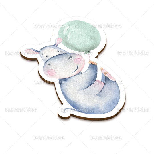 Ξύλινο διακοσμητικό μπομπονιέρας εκτυπωμένο με θέμα Cute baby hippo