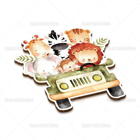 Ξύλινο διακοσμητικό μπομπονιέρας εκτυπωμένο με θέμα Safari Animals