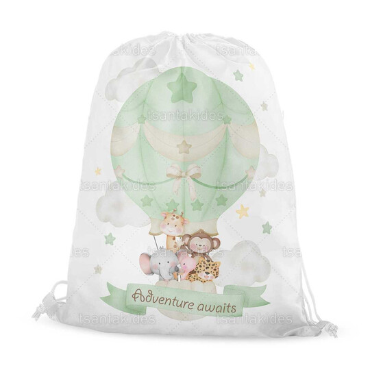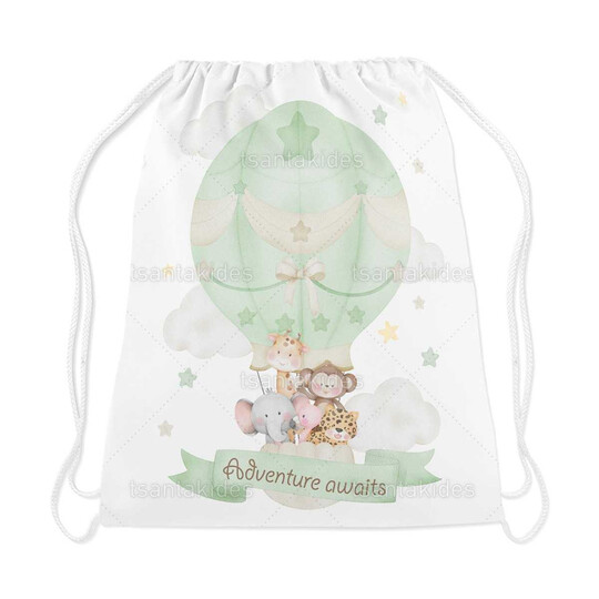 Υφασμάτινο σακιδιο πλατης εκτυπωμένο με θέμα Jungle animals on a hot air balloon