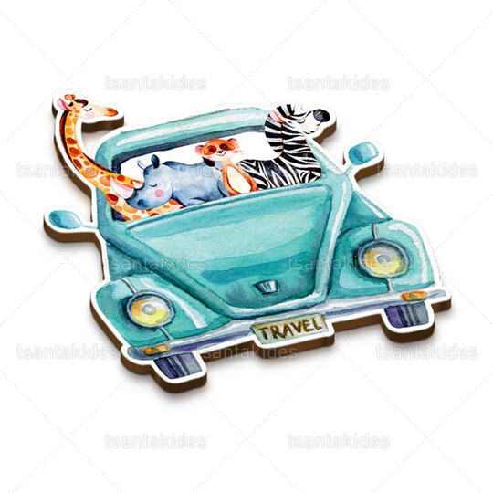 Ξύλινο διακοσμητικό μπομπονιέρας εκτυπωμένο με θέμα τα ζώα της ζούγκλας