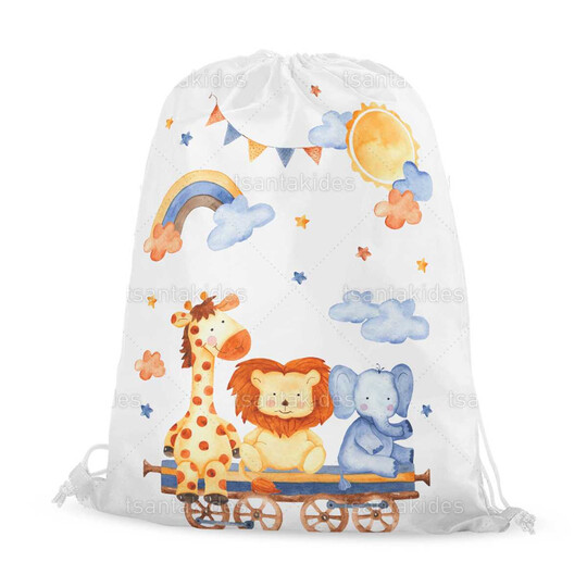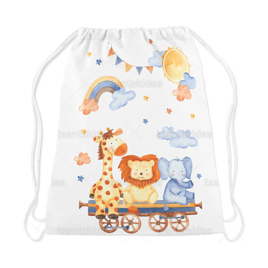 Υφασμάτινο σακιδιο πλατης εκτυπωμένο με θέμα το τρενάκι και τα ζώα της ζούγκλας