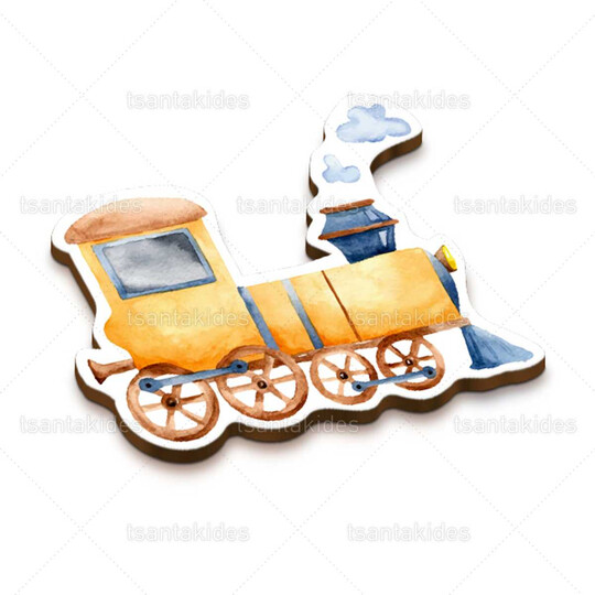 Ξύλινο διακοσμητικό μπομπονιέρας εκτυπωμένο με θέμα το τρενάκι και τα ζώα της ζούγκλας