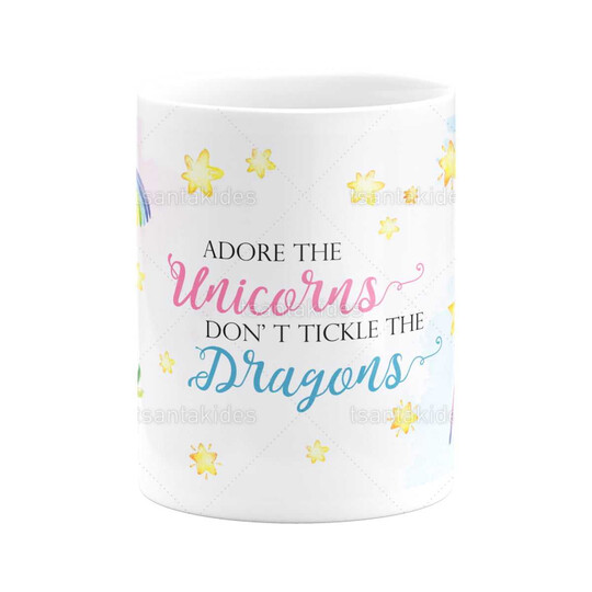 \nΚεραμική κούπα εκτυπωμένη με θέμα το μονόκερο και το δράκο