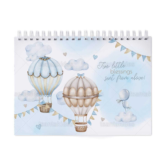 Παιδική μπομπονιέρα βάπτισης μπλοκ ζωγραφικής με διάσταση 21x29cm, εκτυπωμένο με θέμα Αερόστατα.