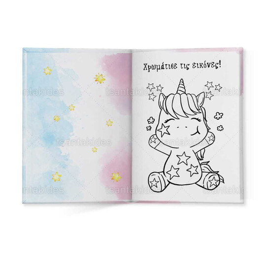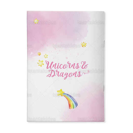 Δίπτυχο δημιουργικής απασχόλησης με ένθετο τετρασέλιδο εκτυπωμένο με θέμα το μονόκερο και το δράκο