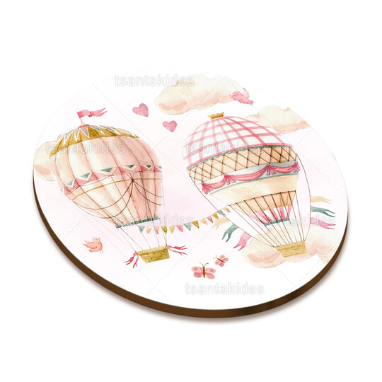 Ξύλινο σουβέρ βάπτισης εκτυπωμένο με θέμα Baby Girls Hot Air Balloon
