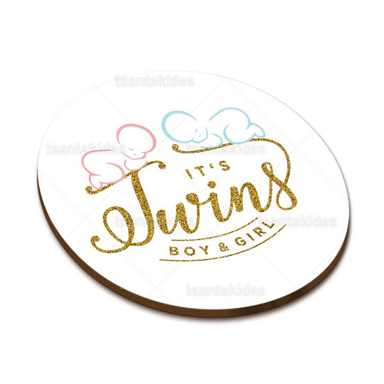 Ξύλινο σουβέρ βάπτισης εκτυπωμένο με θέμα Baby Boy and Baby Girl