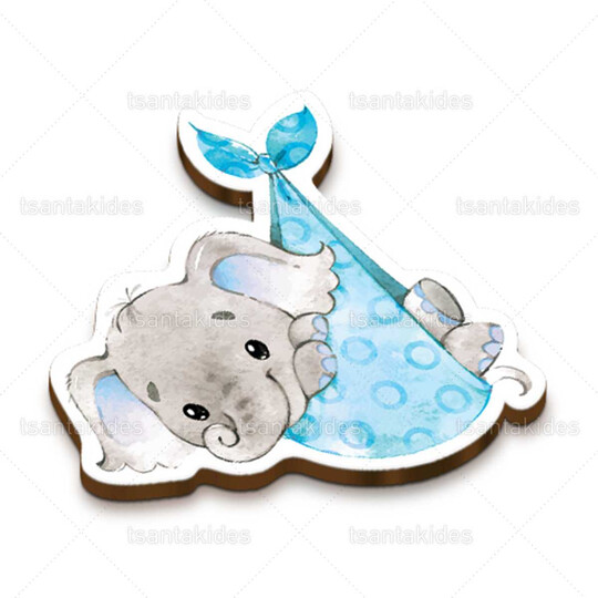 Ξύλινο διακοσμητικό μπομπονιέρας εκτυπωμένο με θέμα τα ελεφαντάκια