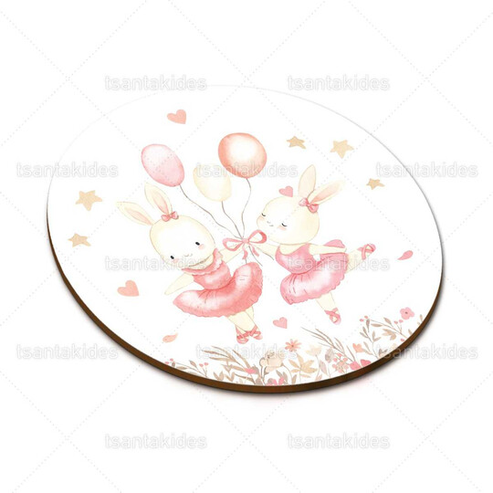 Ξύλινο διακοσμητικό μπομπονιέρας εκτυπωμένο με θέμα Ballerinas Bunnies