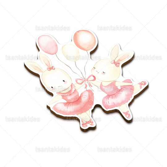 Ξύλινο διακοσμητικό μπομπονιέρας εκτυπωμένο με θέμα Ballerinas Bunnies