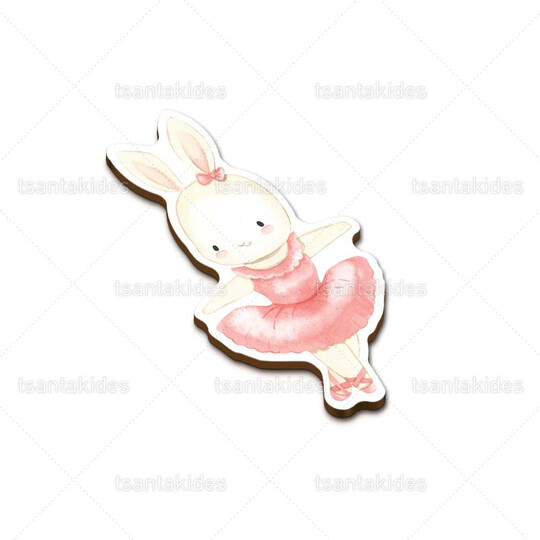 Ξύλινο διακοσμητικό μπομπονιέρας εκτυπωμένο με θέμα Ballerinas Bunnies