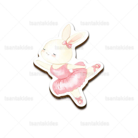 Ξύλινο διακοσμητικό μπομπονιέρας εκτυπωμένο με θέμα Ballerinas Bunnies