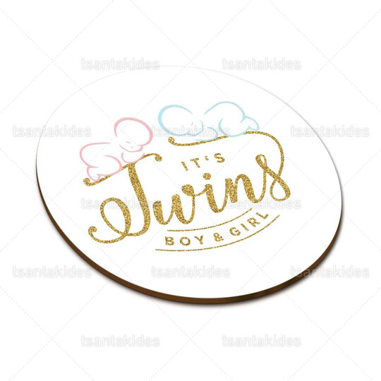 Ξύλινο διακοσμητικό μπομπονιέρας εκτυπωμένο με θέμα Baby Boy and Baby Girl