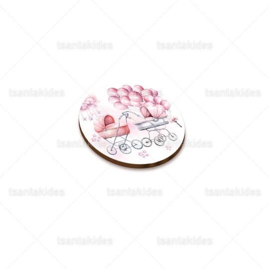Ξύλινο διακοσμητικό μπομπονιέρας εκτυπωμένο με θέμα Twins baby stroller