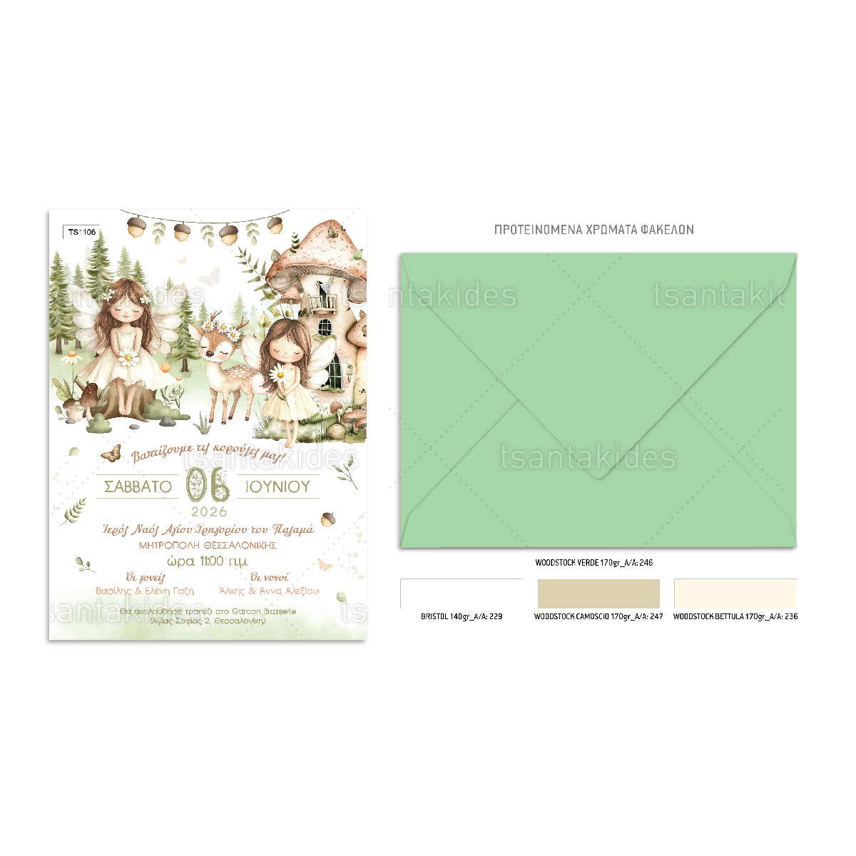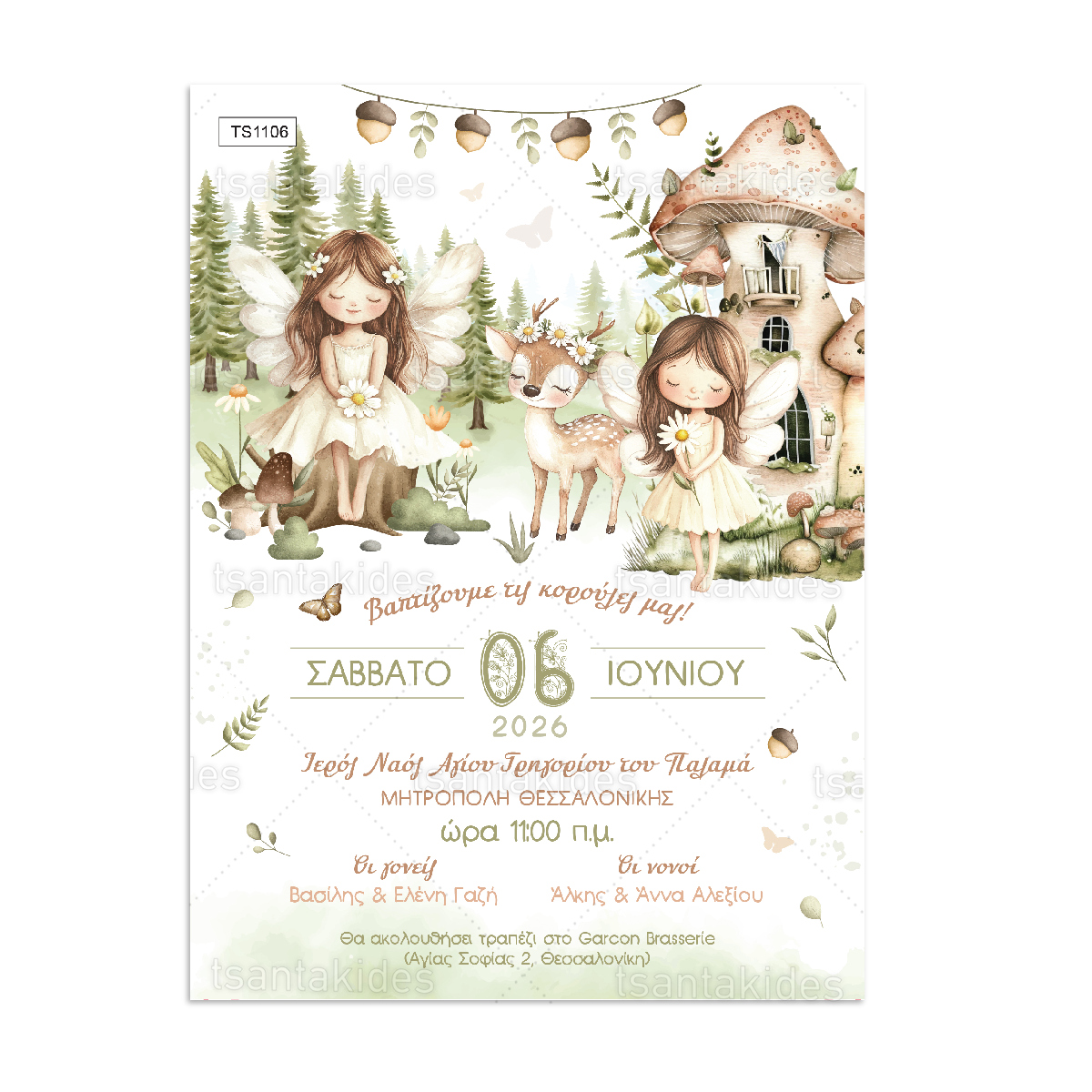 Προσκλητήριο Βάπτισης Για Δίδυμα Forest Fairies 1106