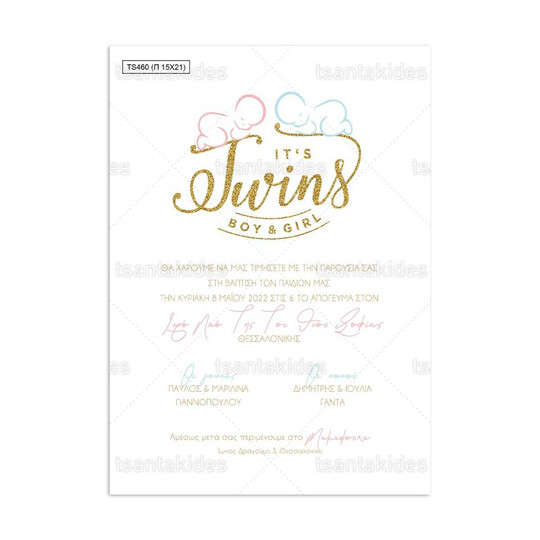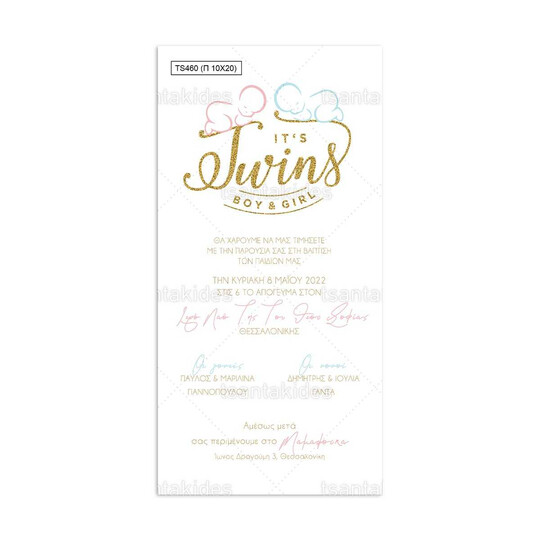 Προσκλητήριο βάπτισης παπυράκι εκτυπωμένο με θέμα Baby Boy and Baby Girl