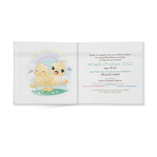 Προσκλητήριο σκληρό καπάκι,  παραμυθάκι μικρό, εκτυπωμένο με θέμα  Little Ducks