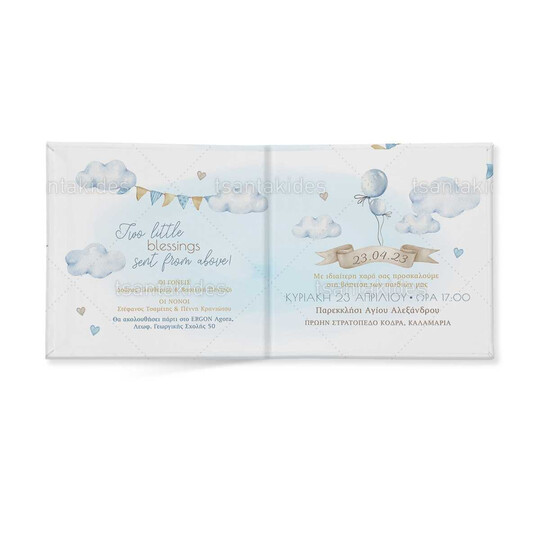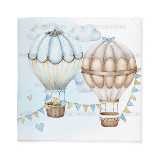 Προσκλητήριο σκληρό καπάκι,  παραμυθάκι μικρό, εκτυπωμένο με θέμα  Baby Boys Hot Air Balloon