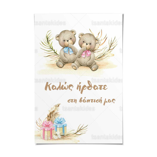 Καρτολίνο βάπτισης εκτυπωμένο με θέμα Twin Bears
