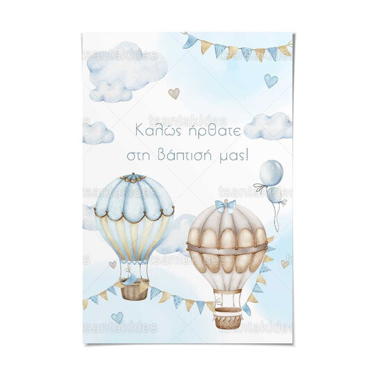 Καρτολίνο βάπτισης εκτυπωμένο με θέμα Baby Boys Hot Air Balloon