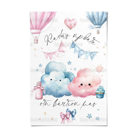 Καρτολίνο βάπτισης εκτυπωμένο με θέμα Clouds twins