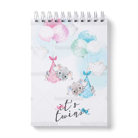 Παιδική μπομπονιέρα βάπτισης μπλοκάκι ζωγραφικής εκτυπωμένο με θέμα Ελεφαντάκια Στα Σύννεφα.