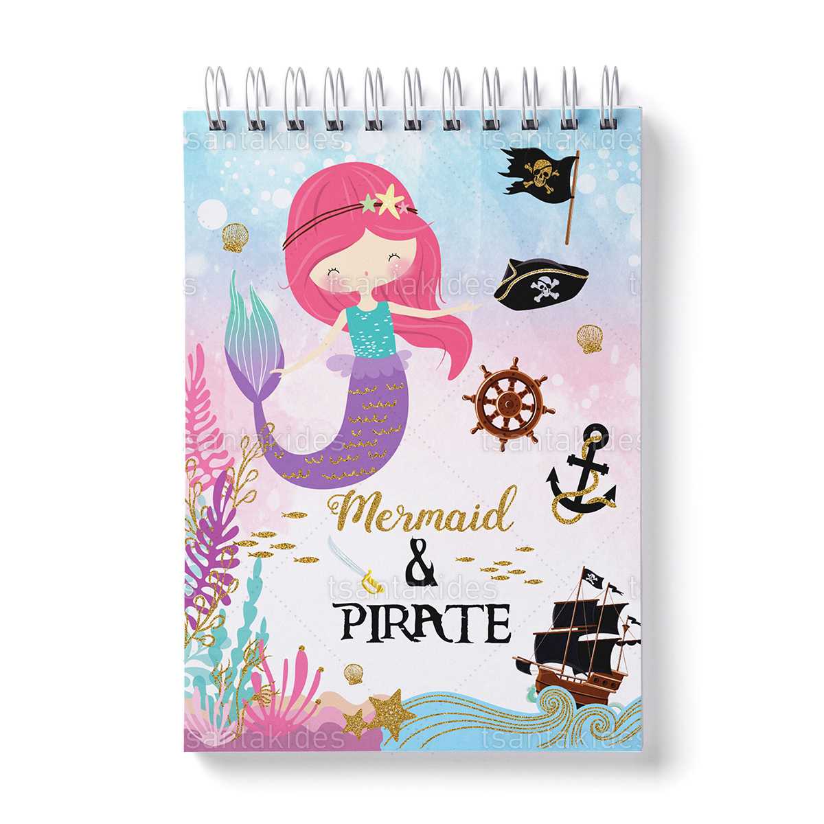Παιδική μπομπονιέρα βάπτισης μπλοκάκι ζωγραφικής εκτυπωμένο με θέμα Γοργόνα και Πειρατής.