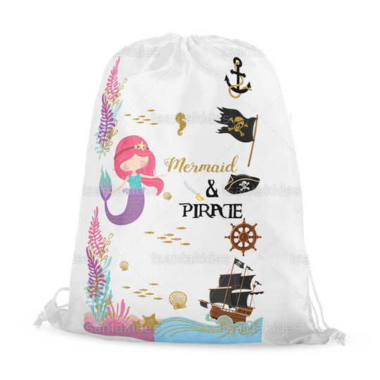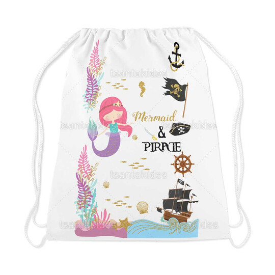 Υφασμάτινο σακιδιο πλατης εκτυπωμένο με θέμα τη γοργόνα και τον πειρατή