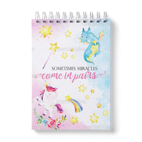 Παιδική μπομπονιέρα βάπτισης μπλοκάκι ζωγραφικής εκτυπωμένο με θέμα Δράκος και Μονόκερος.