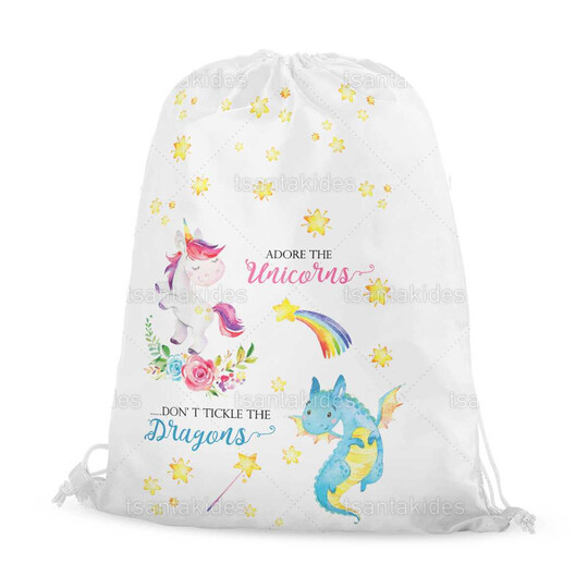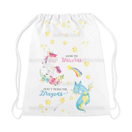Υφασμάτινο σακιδιο πλατης εκτυπωμένο με θέμα το μονόκερο και το δράκο