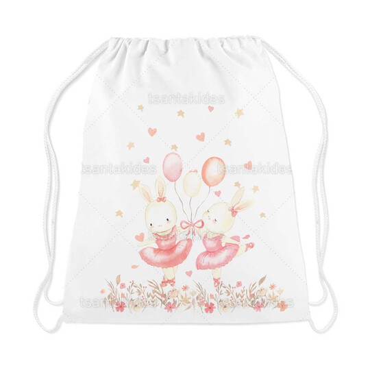 Υφασμάτινο σακιδιο πλατης εκτυπωμένο με θέμα Ballerinas Bunnies