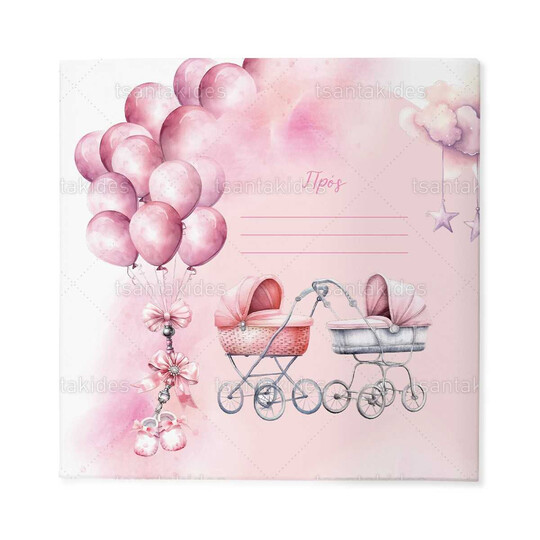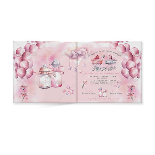 Προσκλητήριο σκληρό καπάκι, παραμυθάκι μικρό, εκτυπωμένο με θέμα Twins baby stroller