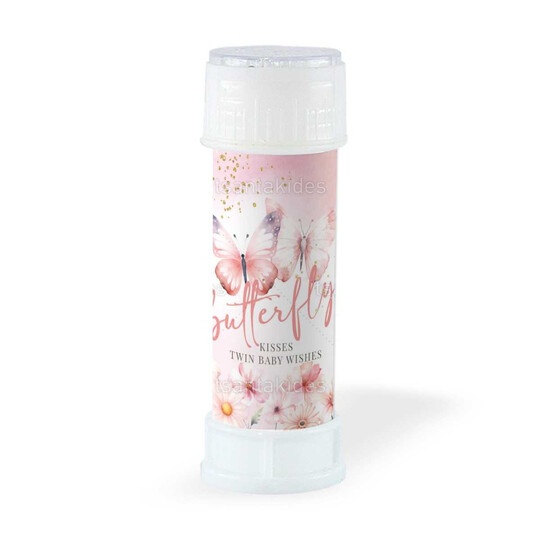 Ετικέτα για σαπουνόφουσκες εκτυπωμένη με θέμα Butterflies twins