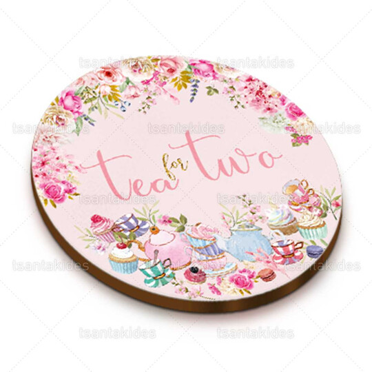 Ξύλινο διακοσμητικό μπομπονιέρας εκτυπωμένο με θέμα shabby chic και teapot